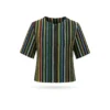 Striped Edition — Vertical multicolored stripes in navy, pink, gold, and burgundy add a bold yet refined character, making it a versatile choice for both polished workwear and chic casual outings.