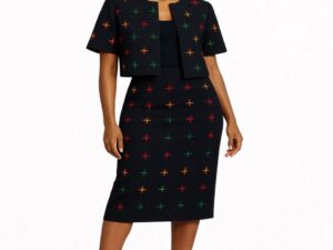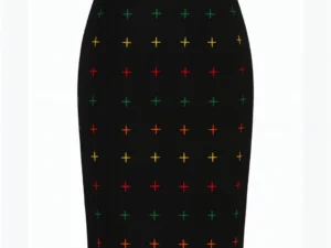 The Asa Nova Skirt features a sleek, timeless silhouette crafted in a rich black aso oke fabric adorned with vibrant embroidered cross-stitch details. The Asa Nova skirt offers an effortless balance of simplicity and standout artistry.