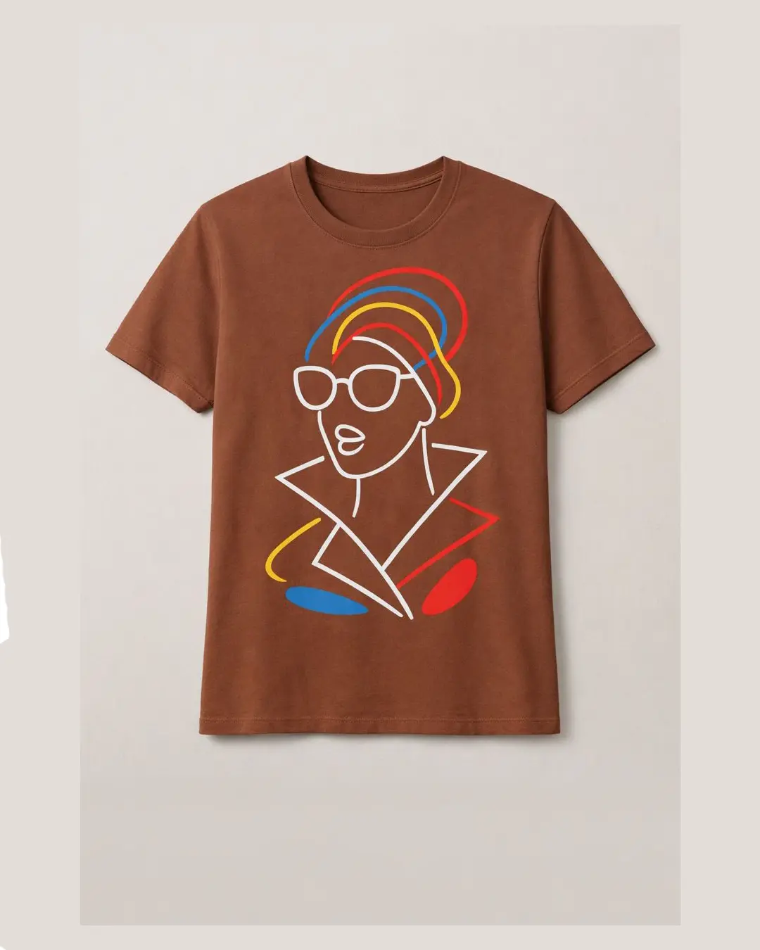 The Rich Aunt Tee is a quiet statement—an ode to the iconic woman who carries confidence, culture, and elegance with ease. Featuring minimalist line art crowned with a swirl of red, blue, and yellow, the design offers a subtle tribute to the West African gele, a timeless symbol of sophistication and strength.