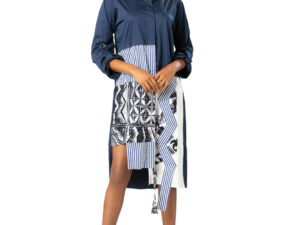 Step into effortless style with the Shero Dress, a modern take on a structured silhouette. Designed with a clean button-down front that stops above the hemline for a relaxed, easy finish, this piece blends form with function beautifully. What truly sets the Shero Dress apart is its uniqueness—no two are alike. Each dress features individually selected African prints and hand-picked cotton fabrics across the front panel and hemline, creating a wearable work of art. From casual days to elevated moments, this dress is your go-to for distinctive, expressive fashion.