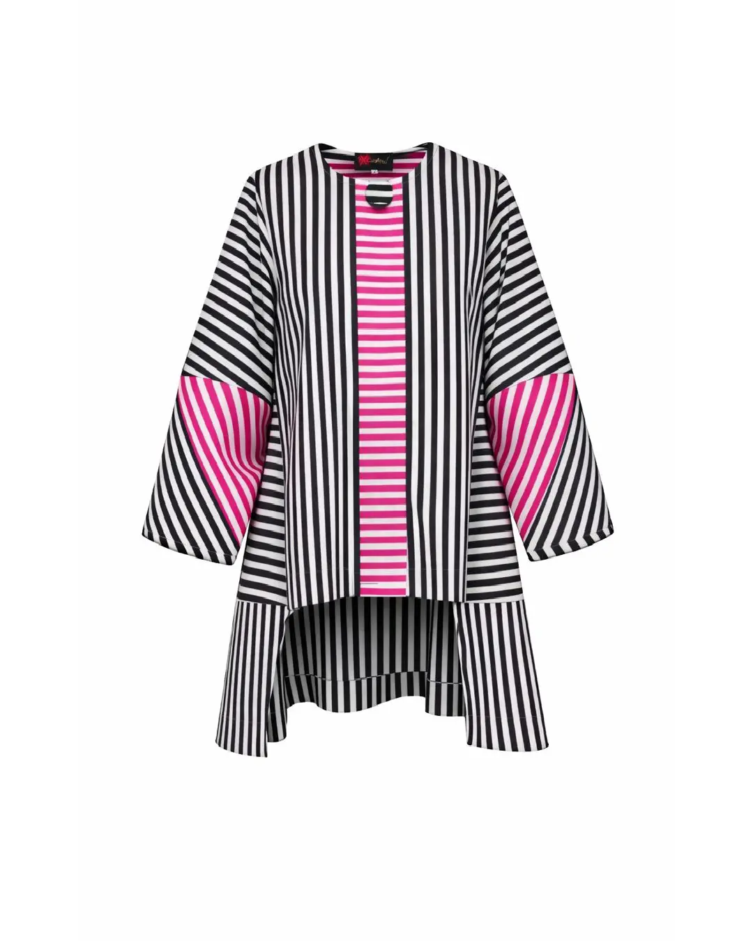 The Susu Top reinvents classic shirting with elegant color stripes, a relaxed fit, and a modern high-low hem—perfect from workdays to weekends.