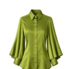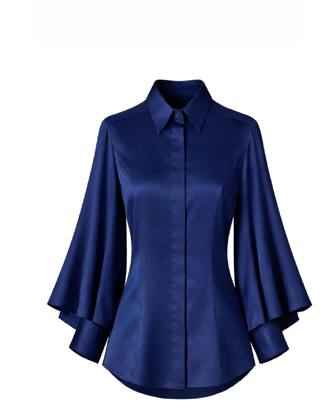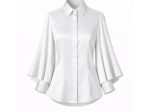 Designed with a clean concealed button placket, classic collar, and softly layered bell sleeves, the Spartan brings subtle drama to a timeless shirt silhouette. It is polished enough for work, yet relaxed enough for everyday styling.