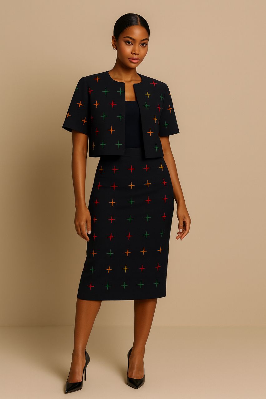 The Asa Nova Skirt is a refined pencil skirt crafted from premium handwoven Aṣọ Òkè, designed to make a quiet yet powerful statement. Finished with delicate multicolour embroidery, it brings texture and depth to a classic silhouette.
