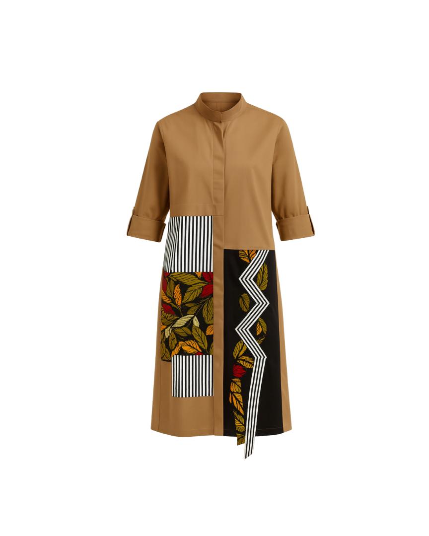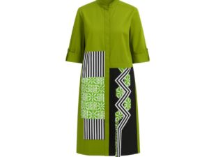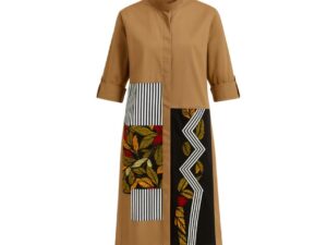 Step into effortless style with the Shero Dress, a modern take on a structured silhouette. Designed with a clean button-down front that stops above the hemline for a relaxed, easy finish, this piece blends form with function beautifully. What truly sets the Shero Dress apart is its uniqueness—no two are alike. Each dress features individually selected African prints and hand-picked cotton fabrics across the front panel and hemline, creating a wearable work of art. From casual days to elevated moments, this dress is your go-to for distinctive, expressive fashion.